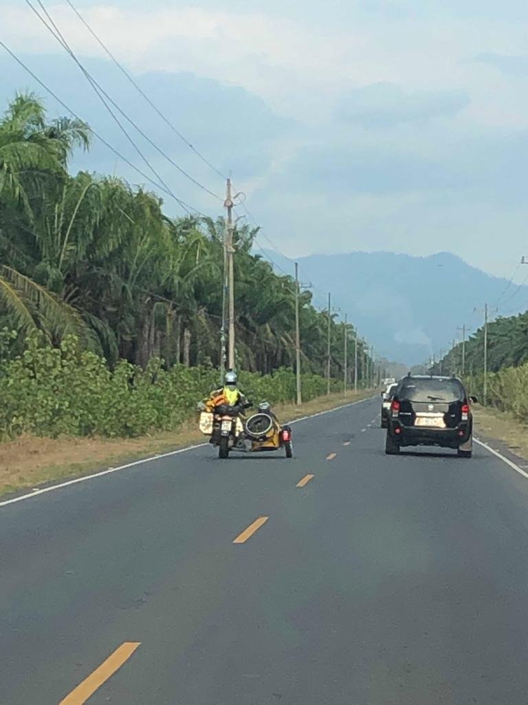 So here we are in a reasonable hotel in Nueva Loja, Ami did a heroic job pulling herself, a bike of the same size, a sidecar, 3 people, 3 persons RTW travel gear and a wheelchair for 26 kms, and did it in under an hour.
