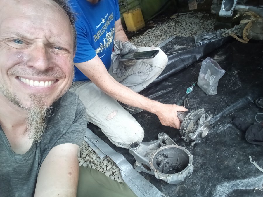 Ja, und dann ist die Dicke runderneuert, was die schlimmen Teile am Motor angeht, die unserer Weiter- und Heimreise im Wege stehen könnten. Ihr könnt euch sicher vorstellen, wie viele schwere Brocken von unseren Herzen gefallen sind. Erleichterung pur!