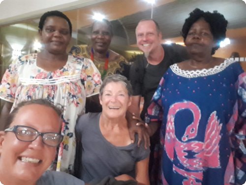 Des Abends kamen wir mit Emilia Amupewa, einer der anwesenden Parlamentsangehörigen in Kontakt. Sie berichtete, das sie im namibischen Befreiungskampf beim Angriff auf Cassinga in Angola schwer verwundet wurde. Von dort wurde sie nach Ostdeutschland zur medizinischen Behandlung ausgeflogen. Ihr rechtes Bein musste amputiert werden. Sie kehrte nach Sambia zurück, um sich dort weiter für die Unabhängigkeit Namibias politisch zu engagieren bevor ihre politische Karriere in Namibia begann. Da die Damen sich bereits zur Nachtruhe zurückziehen wollten, blieb es bei dem Kurzabriss ihres Lebens. Sie wollte unsere Visitenkarte, um mit uns in Kontakt bleiben zu können. Einzig unseren Sticker konnten wir ihr überreichen.
