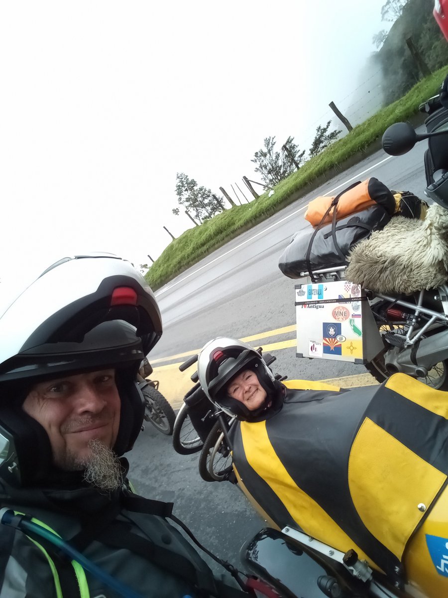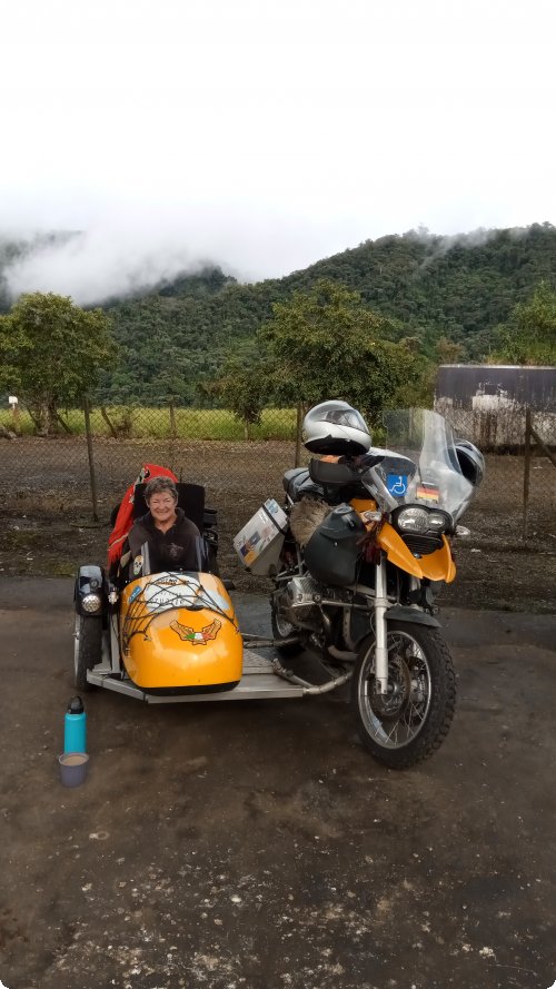 So here we are in a reasonable hotel in Nueva Loja, Ami did a heroic job pulling herself, a bike of the same size, a sidecar, 3 people, 3 persons RTW travel gear and a wheelchair for 26 kms, and did it in under an hour.