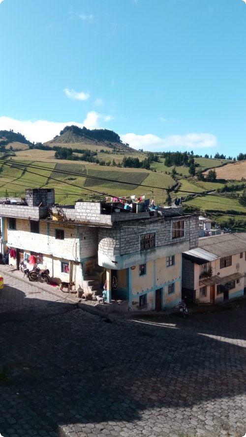 Hier in den Bergen wird Land- und Viehwirtschaft betrieben. Käse ist der große Renner, und unter anderem auch Schweizerkäse. Aber besonders der Salinas Käse ist in ganz Ecuador bekannt. Es wird sogar Käsefondue angeboten. Also könnt ihr ermessen, wie hoch wir sind, wie kalt es hier ist und auch wie allgäuisch oder österreichisch es hier ist. Und dann auch wegen der Höhe und der anderen Vegetation doch so anders als im Allgäu oder in Österreich.
