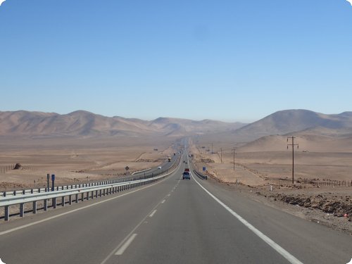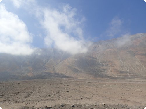 Von Caldera wollten wir die Küstenstrasse in Richtung Süden nehmen, doch Nebel und deshalb kalt, ließen uns unsere Idee verwerfen. Die Strasse am Meer entlang zeichnete sich durch einen Belag aus, der Pavamiento basico genannt wird. Durch die Luftfeuchtigkeit war er ziemlich rutschig. Das machte Toshi wenig Freude. Stattdessen nahmen wir dann die Ruta 5, um Strecke zu machen und erreichten La Serena in einem Fahrtag.