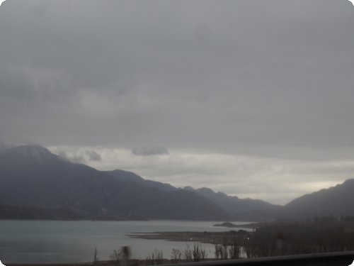 Auf argentinischer Seite dann schlechtes Wetter mit Nebel. Unser Ferienhaus kalt, dunkel und muffig. Vermutlich die Bleibe der verstorbenen Tante mit alledem, was sie besessen hatte. Und das war viel. Der Gastgeber ein Schlitzohr oder guter Geschäftsmann lockte mit Bier. Weiß doch die halbe Welt, wonach die reisenden Deutschen als erstes fragen. Der Ferienort am Stausee ausgestorben. Kein Restaurant offen. Kein Laden weit und breit bot uns unser Gastgeber an, eine Pizza zu backen. Denkwürdig diese Pizza mit gebrösltem Ei anstatt Käse, noch teigigem Teig und 12 Kulleroliven. Auf jedem Stück eine, die stets von der Pizza rollte, weil nach dem Backen draufgelegt. Auch hier waren wir uns einig: Eine der schlechtesten Pizzen von allen schlechten Pizzen, die wir je in unserem Leben gegessen hatten. Gut gemeint ist eben nicht immer gut. Erst in Mendoza stellten wir dann noch fest, in welchem Umfang er uns über’s Ohr gehauen hat.