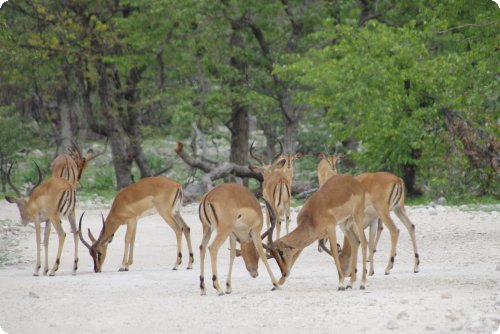 Der Klifschliefer würde wie immer eine halbe Runde Polonese mitmachen, um sich dann gelangweilt wieder seinem Getränk zuzuwenden. Der Ausfoxtrott wird in Namibia eher solo als zu zweit getanzt. Das ist dem kleinen Buschbaby ganz recht. Wie solle er sonst mit dem Elefanten Foxtrott tanzen.